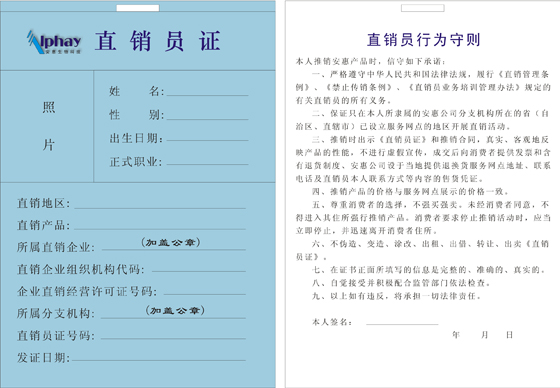 您現在的位置 >> 直銷信息披露 >>直銷員證樣本